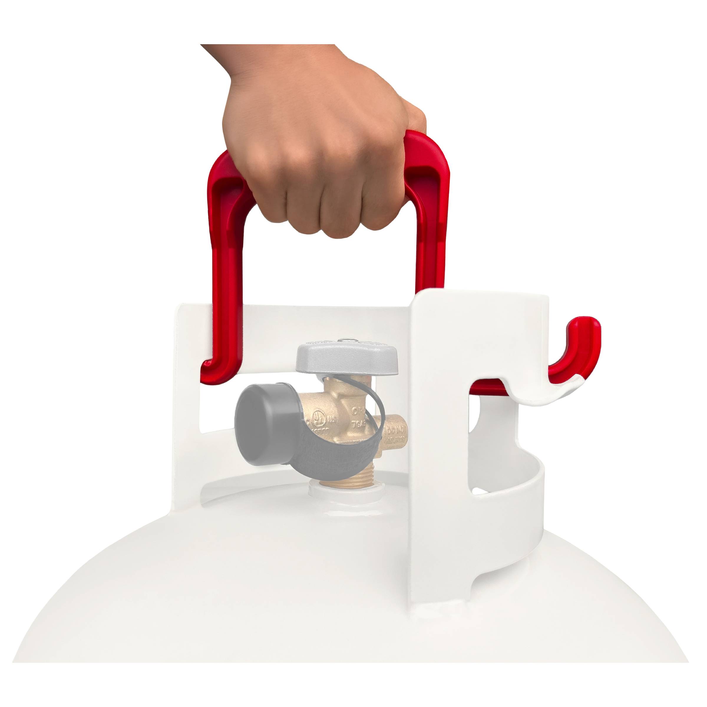Standard propane tank handles are thin, off-center, and can strain hands and wrists during repeated lifts.